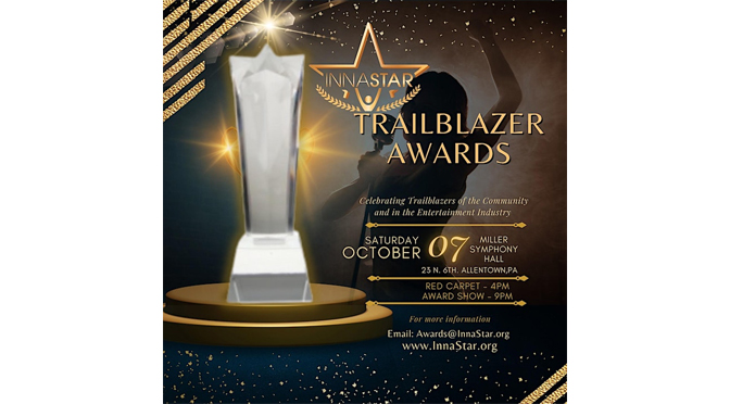 ALLENTOWN, PA – Saturday, October 7th, 2023 — The InnaStar Trailblazer Awards, an event recognizing exceptional individuals and organizations in the arts, community service, filmmaking, and music is set to take place on October 7th, 2023 at Miller Symphony Hall. This star-studded evening promises inspiration and celebrates trailblazing achievements.