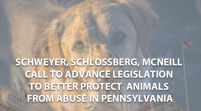 Schweyer and McNeill recently introduced legislation to provide financial support to ease the financial stress Pennsylvania humane societies face. The Animal Cruelty Investigation Fund would help to pay for training, equipment, medical care, shelter costs and expenses for humane society police officers.