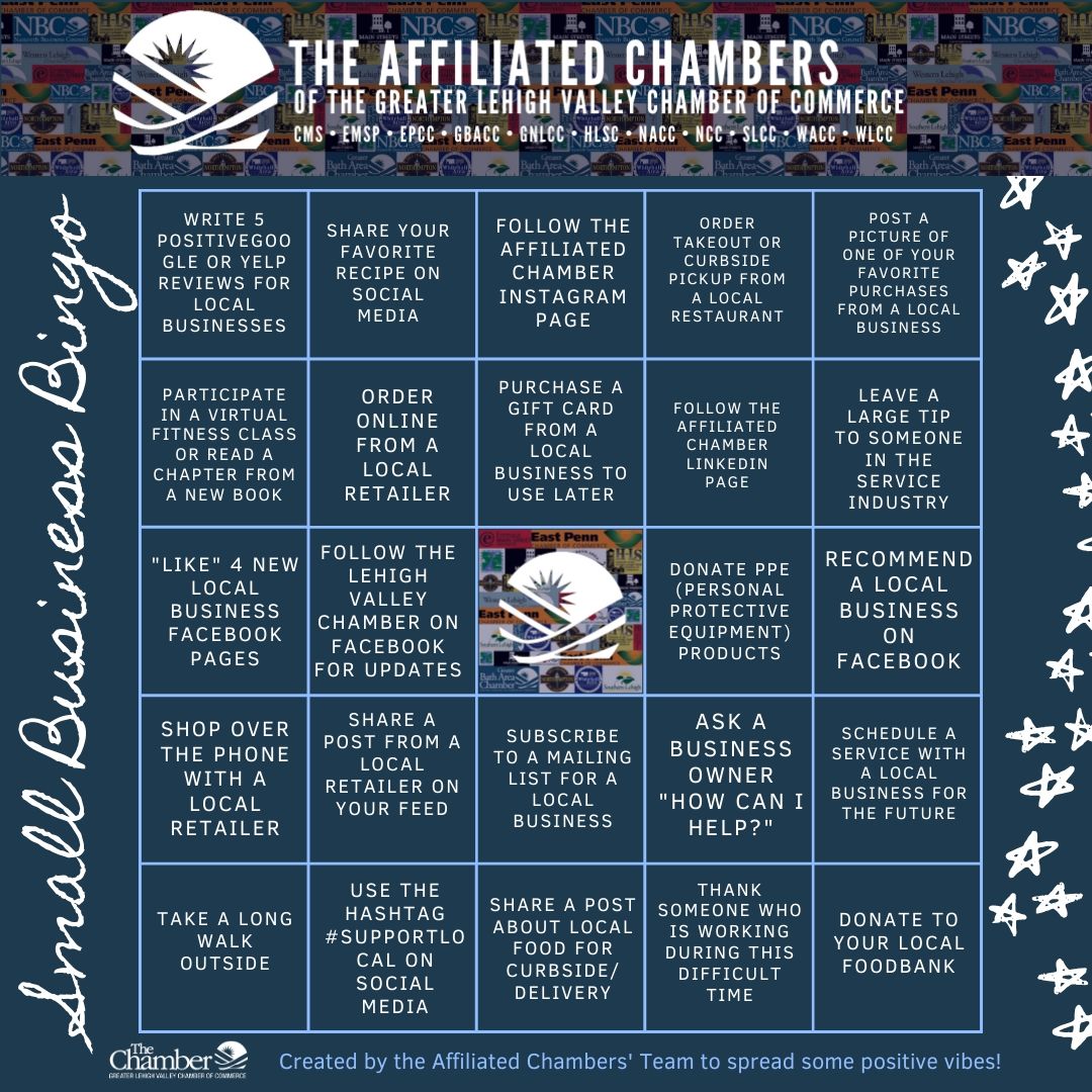 Lauren Bertucci, Manager of Affiliated Chambers for the Greater Lehigh Valley Chamber, mentioned; “Now more than ever, we need to support local. These businesses, who are currently struggling under the unfortunate circumstances, are the backbone of our community. It is our job to ensure we are doing everything possible to support them in their time of need. Together, we can and we will get through this.”