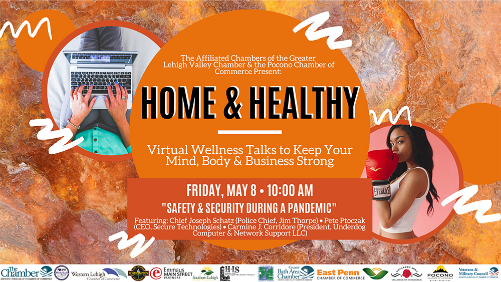 The series will wrap up via the Zoom Meeting platform on Friday, May 8th at 10:00 AM. Part-three will focus on safety and security during a pandemic. Experts panelists from the public safety and cyber security industry will include, Chief Joseph Schatz (Police Chief, Jim Thorpe), Pete Potoczak (CEO, Secure Technologies), and Carmine J. Corridore (President, Underdog Computer and Network Support LLC).