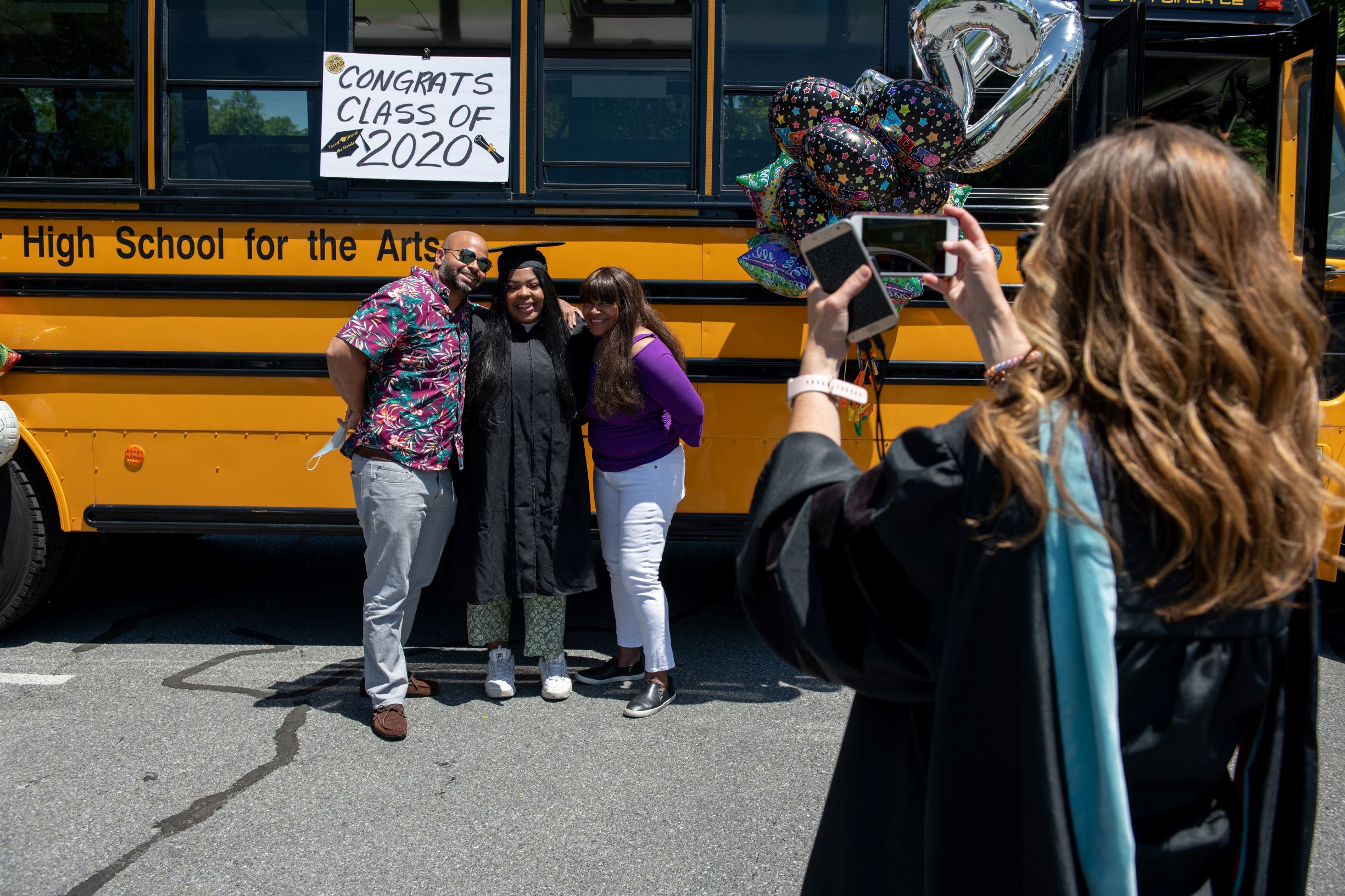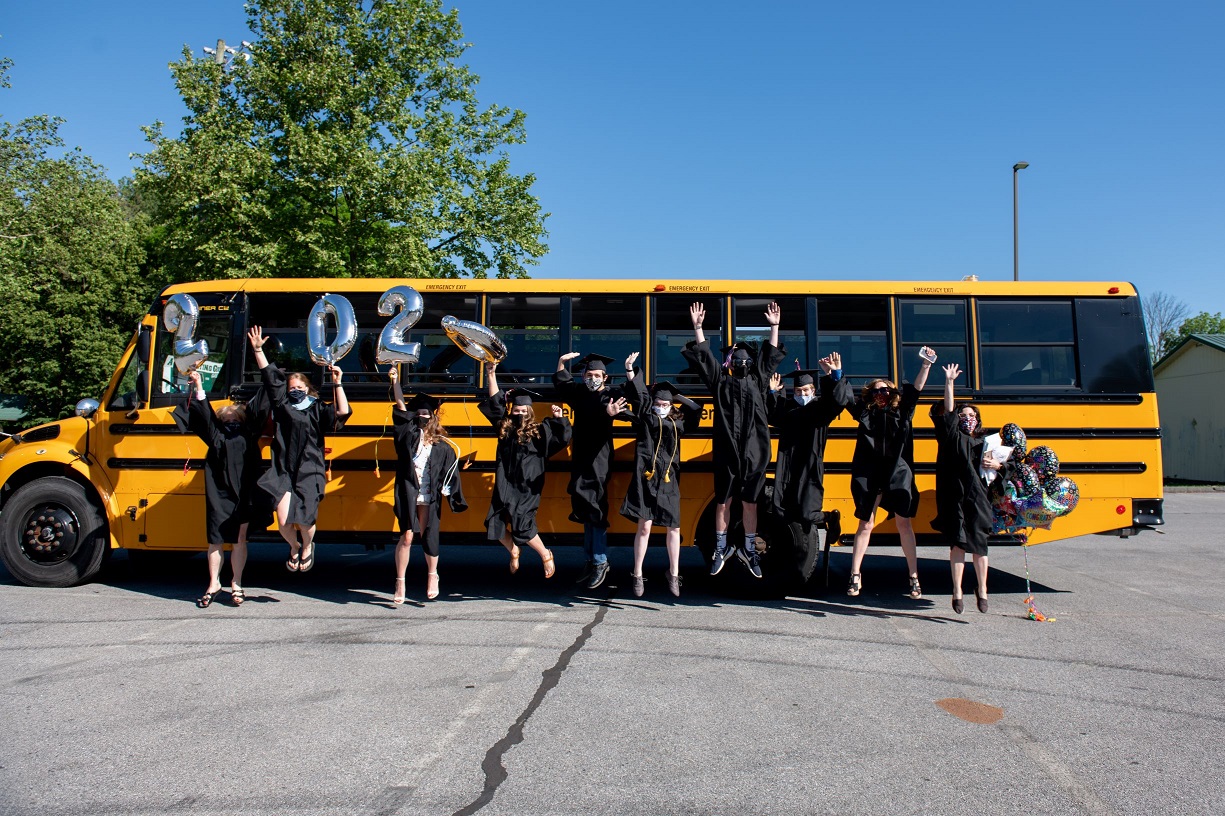 LEHIGH VALLEY, PA (June 8, 2020)— On Monday, administrators of the Lehigh Valley Charter High School for the Arts (Charter Arts) embarked on a bus tour, called “Park and Circumstance”, to celebrate with members of its Class of 2020. Since the school’s student body hails from more than 40 school districts across a ten-county region, the ability to visit senior students individually who reside in such a wide geographic region was not logistically possible, so the school arranged public park stops throughout the region.