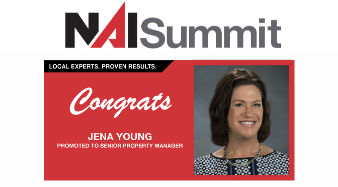 For over 35 years, NAI Summit has offered superior commercial and industrial real estate services to the region. Contributing to our record of success, NAI Summit is proud to announce the promotion of Jena Young to Senior Property Manager.