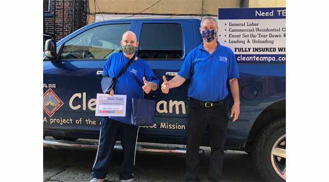 After Michael graduated from the Transformation Program on August 12, 2019, Michael became a volunteer at the Allentown Rescue Mission and donated his time cleaning, vacuuming, stocking supplies, etc. throughout the facility. The following month a position became available through the Clean Team in facilities, and Michael was a perfect fit. He was hired part-time and has done very well in his new job.