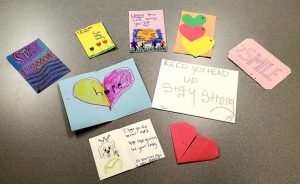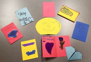 Pictures of cards of encouragement made by children in KidsPeace’s residential treatment program and sent to area nursing homes in the Lehigh