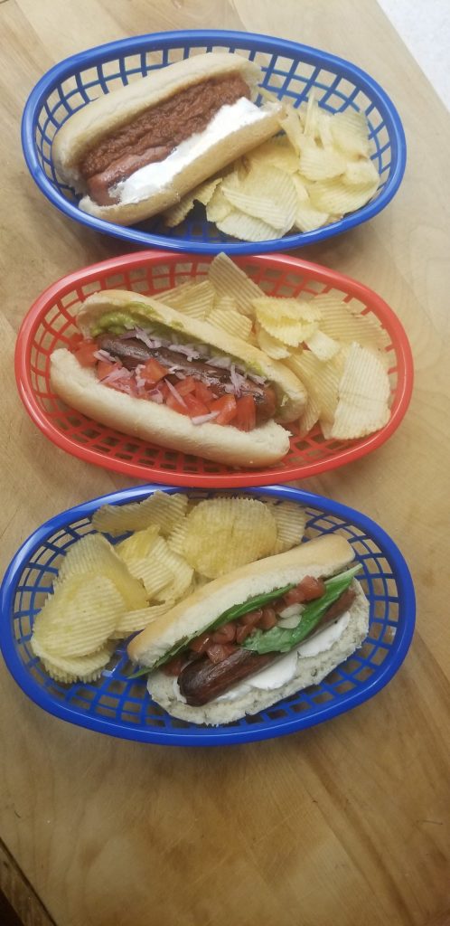 The list of toppings are numerous – from the basic Ketchup, Mustard or Relish to Onions, Mayo, Asst. Cheeses, Bacon, Chili, Sauerkraut, Salsa, Guacamole, Bruschetta,  – the list keeps growing.