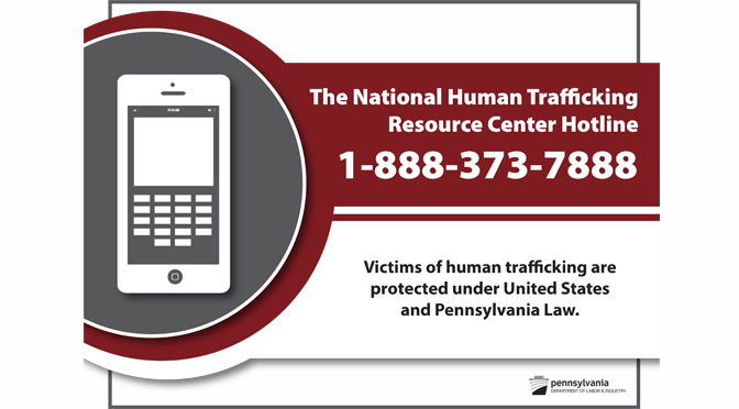 Act 197, or The National Human Trafficking Resource Center Hotline Notification Act, requires certain businesses and establishments in Pennsylvania to promote the national trafficking hotline as a front-line measure for those who may suspect trafficking anonymously and, in a manner, safe for victims. Trafficking victims can also call the hotline.