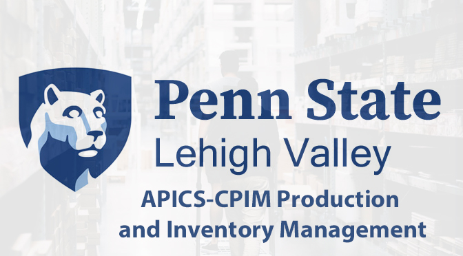 This two-part program includes: 72 hours of instruction plus access to APICS online and Penn State online learning materials, practice tests, exam review, and exam vouchers. Program is taught by Penn State approved and APICS certified instructors. These courses are being offered in collaboration with other campuses of Penn State thru video link, Zoom and online platforms, classes are originated at Penn State Scranton.