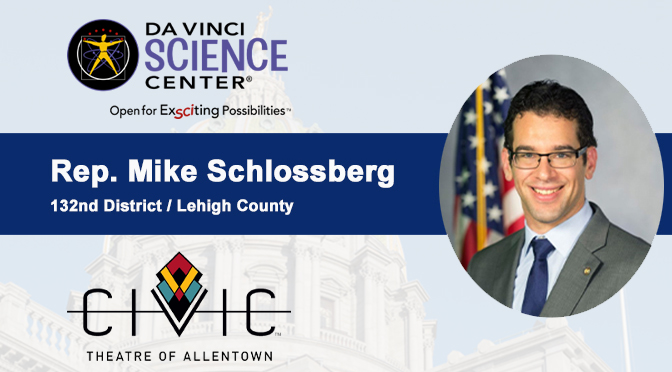 HARRISBURG, Sept. 15 – State Rep. Mike Schlossberg, D-Lehigh, today announced a combined total of more than $144,000 in relief funding was awarded to two cultural organizations in Allentown through the COVID-19 Cultural and Museum Preservation Grant program for cultural organizations and museums to offset lost revenue caused by the COVID-19 pandemic.