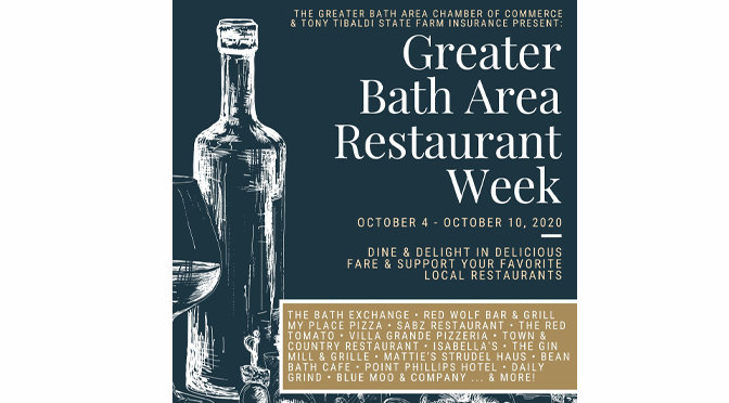 Calling all foodies! Just in time to head into fall, Greater Bath Area Chamber’s first ever Restaurant Week premiers from October 4-10, 2020! This week-long event is designed to shine a spotlight on the diverse and delicious restaurants in the Greater Bath Area while enticing the community to support local businesses when they need it the most.