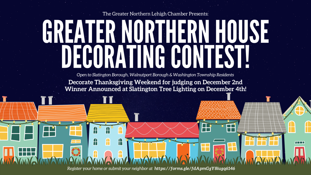 Finally, our collection of holiday events adds a brand-new event this year: The Greater Northern Lehigh House Decorating Contest! The contest is designed to bring a little extra holiday spirit to the community. Residents of Slatington Borough, Walnutport Borough and Washington Township are invited decorate the exterior of their homes before or during Thanksgiving weekend and submit their addresses for the judging on December 2nd. The winner will be announced at the Slatington Tree Lighting event on Friday December 4th!