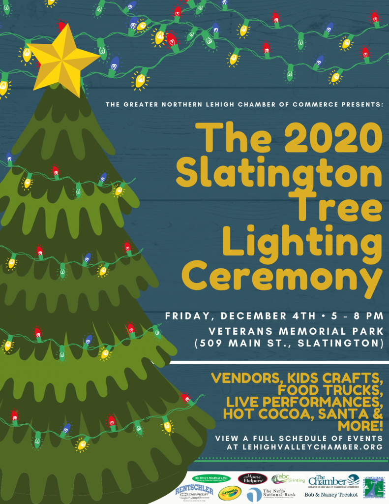 - Slatington Borough Tree Lighting: December 4, 2020 (5-8 PM)