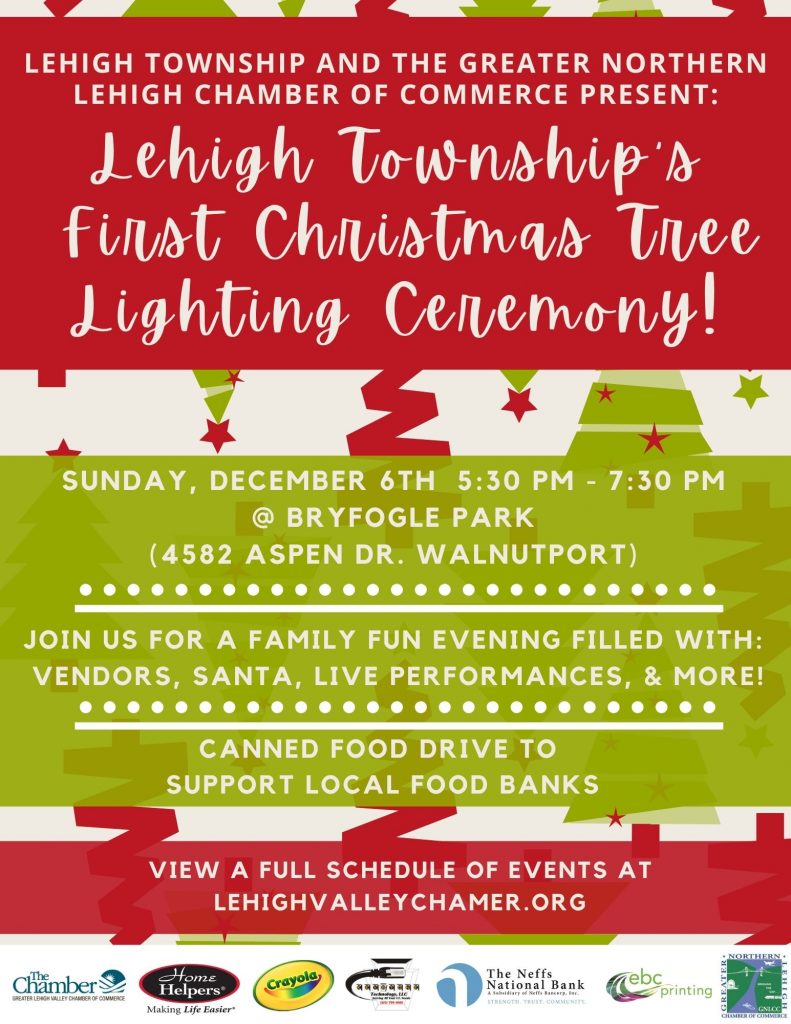 - Lehigh Township Tree Lighting: December 6, 2020 (5:30 – 7:30 PM)