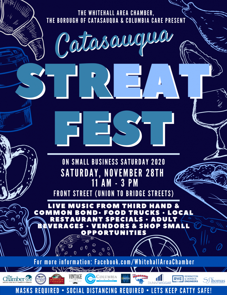 The Whitehall Area Chamber is proud to partner with the Borough of Catasauqua and Columbia Care to present the first ever Catasauqua StrEAT Fest on Small Business Saturday!