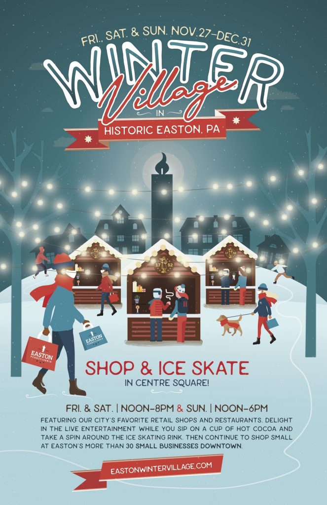 “I’m proud that our city’s new holiday event will bring shoppers to downtown Easton to visit our retail huts and many small business retailers,” Panto said. “The ice-skating rink is the jewel of the event and evokes memories of my youth when we’d ice skate in local parks around the city. My hope is that the Winter Village creates those same kind of holiday memories for local families and can become an annual event that grows each year.”