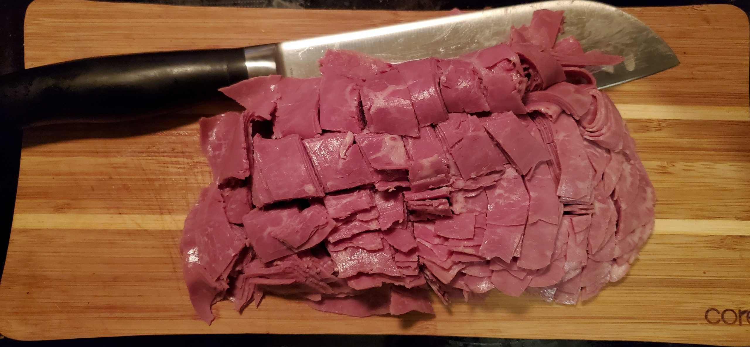 Had some leftover corned beef, half jar of kraut, few slices of rye bread, ½ bottle of dressing and a pack of Swiss cheese.