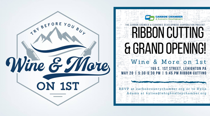 The Carbon Chamber and Economic Development Corporation, proud partner of the Greater Lehigh Valley Chamber of Commerce invites you to celebrate the grand opening and ribbon cutting ceremony for Wine & More on 1st!