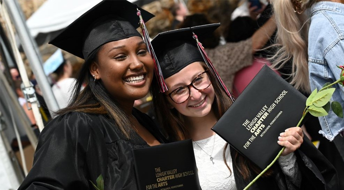 BETHLEHEM, PA —-On Tuesday, June 15, 2021, the Lehigh Valley Charter High School for the Arts (Charter Arts) held its 2021 Commencement Ceremony under the PNC Tent at the ArtsQuest Center at SteelStacks in Bethlehem. The school held two ceremonies this year- the 10 AM Ceremony celebrated graduates from Instrumental Music, Production Arts, Theater, and Vocal Music and the 2 PM Ceremony celebrated graduates from Dance, Literary Arts, and Visual Arts.
