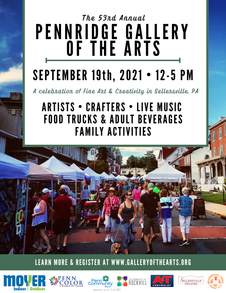 The Borough of Sellersville and the Pennridge Gallery of the Arts Committee is proud to present the 53rd Annual Pennridge Gallery of the Arts on September 19, 2021!