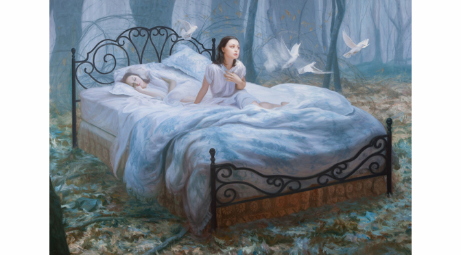According to Vallejo, “The overall theme uniting this work is a positive, optimistic view of humanity and our quest for meaning”. He also shares: “The main focus of my work centers around mythological ideas that motivate us to maximize our potential. Also, present is my interest in observing the beauty and poetry life offers on a regular basis. My painting and drawings portray the human figure and a form of romantic, symbolic, introspective realism to explore these themes”