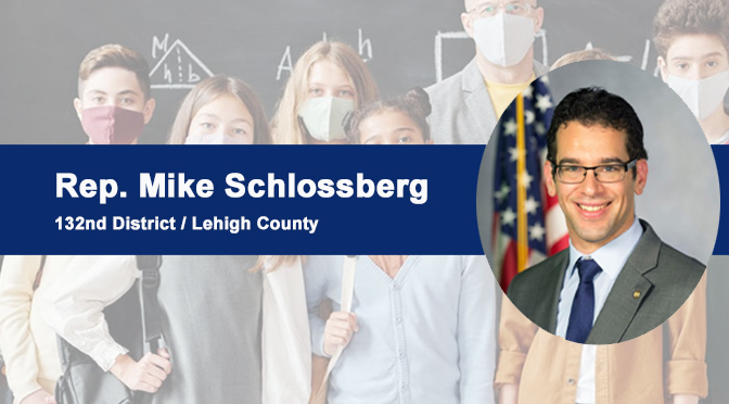 HARRISBURG, Sept. 1 – State Rep. Mike Schlossberg issued the following statement regarding the announcement by the Wolf administration of statewide school mask requirements.
