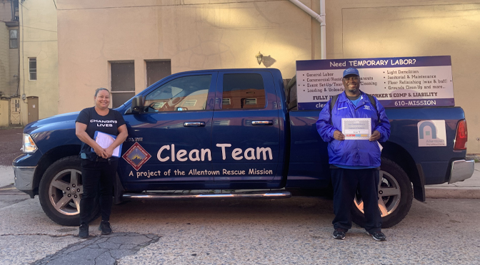 that’s available for hire to the community. The Clean Team pays the men above PA state minimum wage– helping them save a nest egg to transition back into the community. In a typical year, the Allentown Rescue Mission provides shelter services for over 946 men per year, and serves over 42,000 meals a year to men in need.
