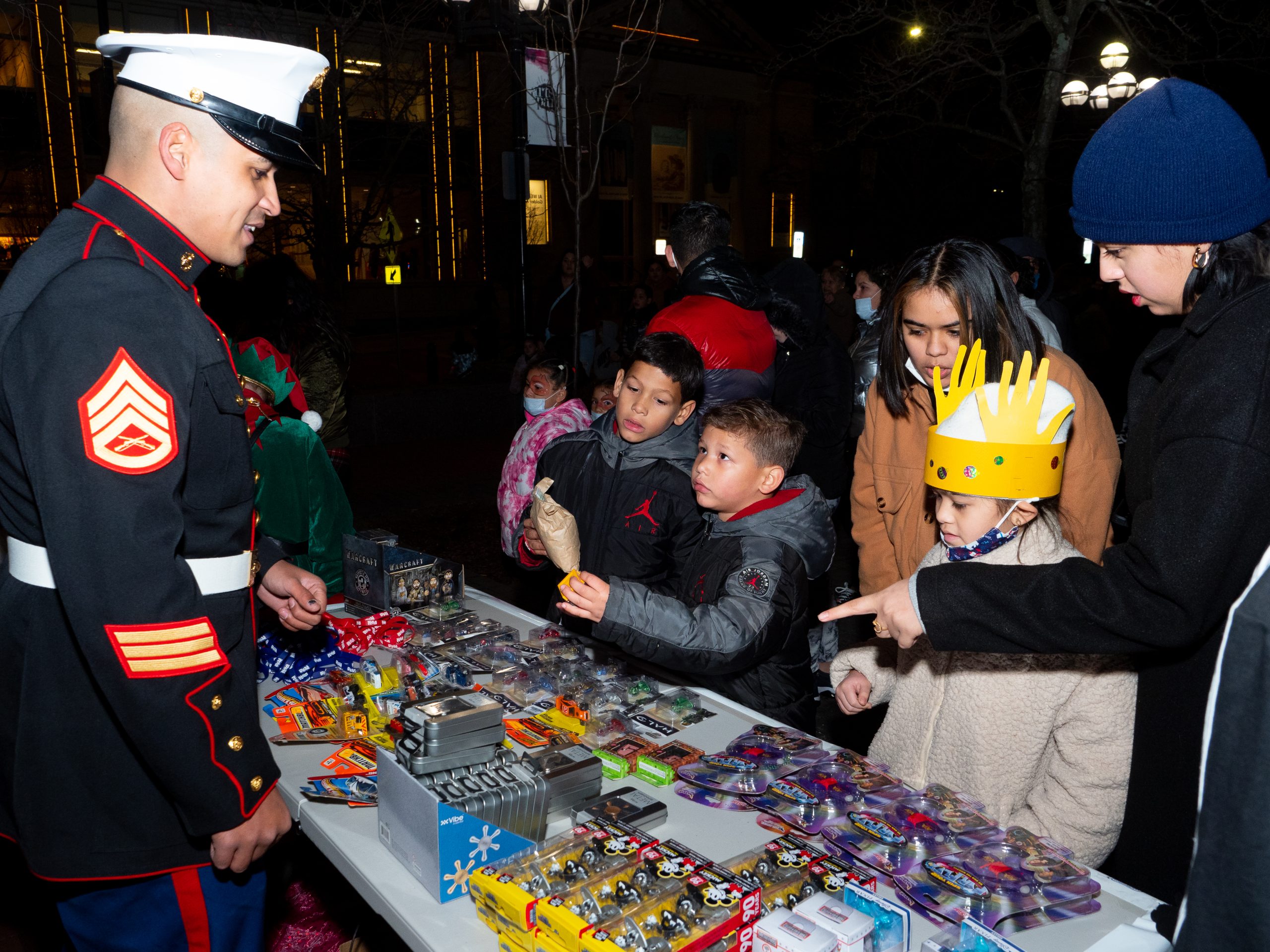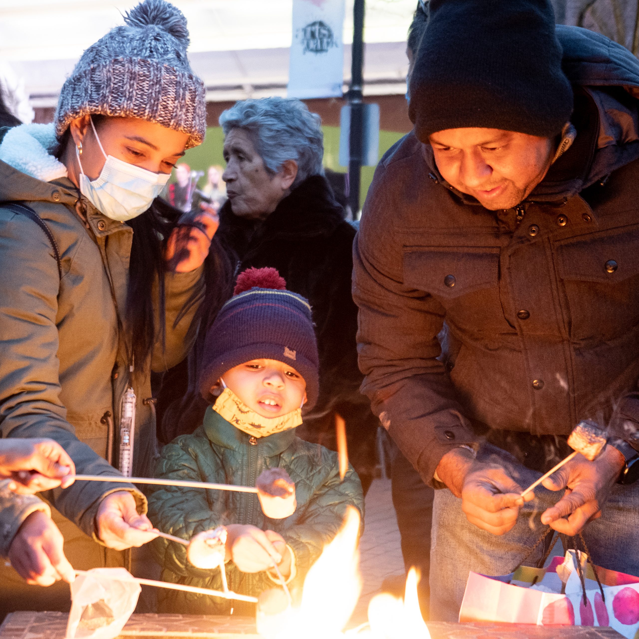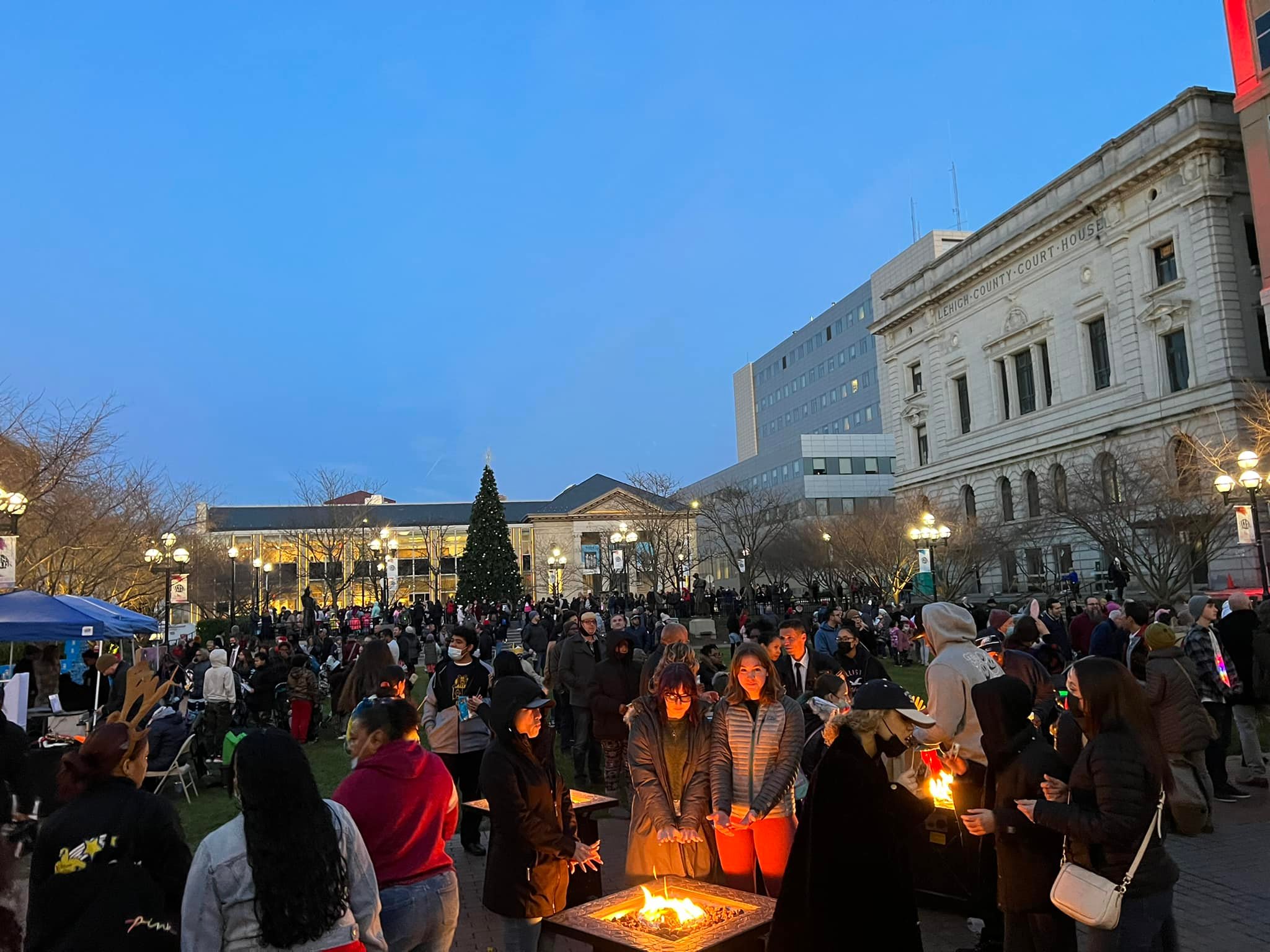 The William Allen Marching band opened the show with holiday classics. Then, the Dieruff High School Choir performed followed by the William Allen High School Dance Performers. Mack Trucks delivered Santa to the scene, led by the Allentown Fire Department fire truck with sirens blazing and lights flashing as they approached 5th Street. Fire pits were present for roasting Stuffed Puffs marshmallows and were run by the Allentown Fire Department. The Chamber had a huge giveaway table including RCN blankets, LVHN JB Reilly Children’s Hospital glow sticks, Stuffed Puffs marshmallow bags, and so much more. Many got to experience the photobooths on site, one hand painted by Brittney Ciardi of the Allentown Chamber team, featuring the Iron Pigs and Phantoms mascots. Another photobooth provided take home photo strips from the event. La Mega Radio was present with their lit-up Hummer, music, and giveaways.