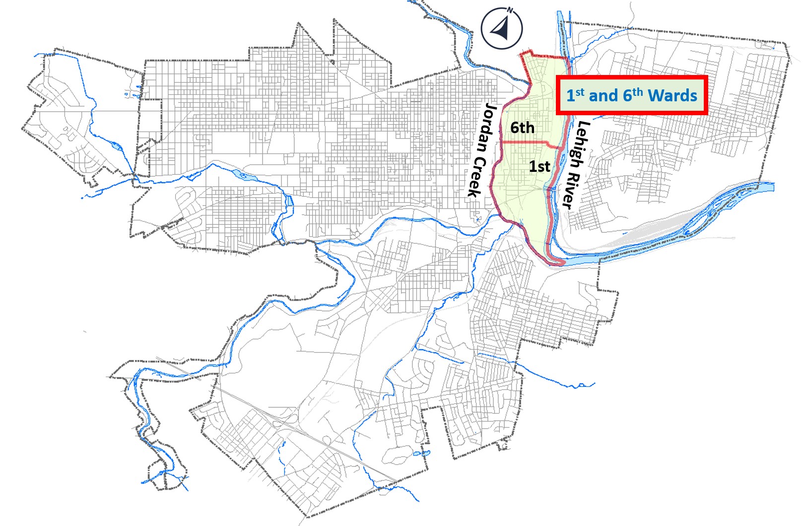 The 1st and 6th wards, which are located between the Lehigh River and Jordan Creek and Sumner Avenue and Union Street, are the first area where neighborhood planning is being fulfilled.