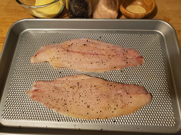 For today’s dish, I ordered 1# of filets. It was 2 thick filets (give ample time to cook). This recipe will yield 2+ servings, if serving with a starch and veggie.
