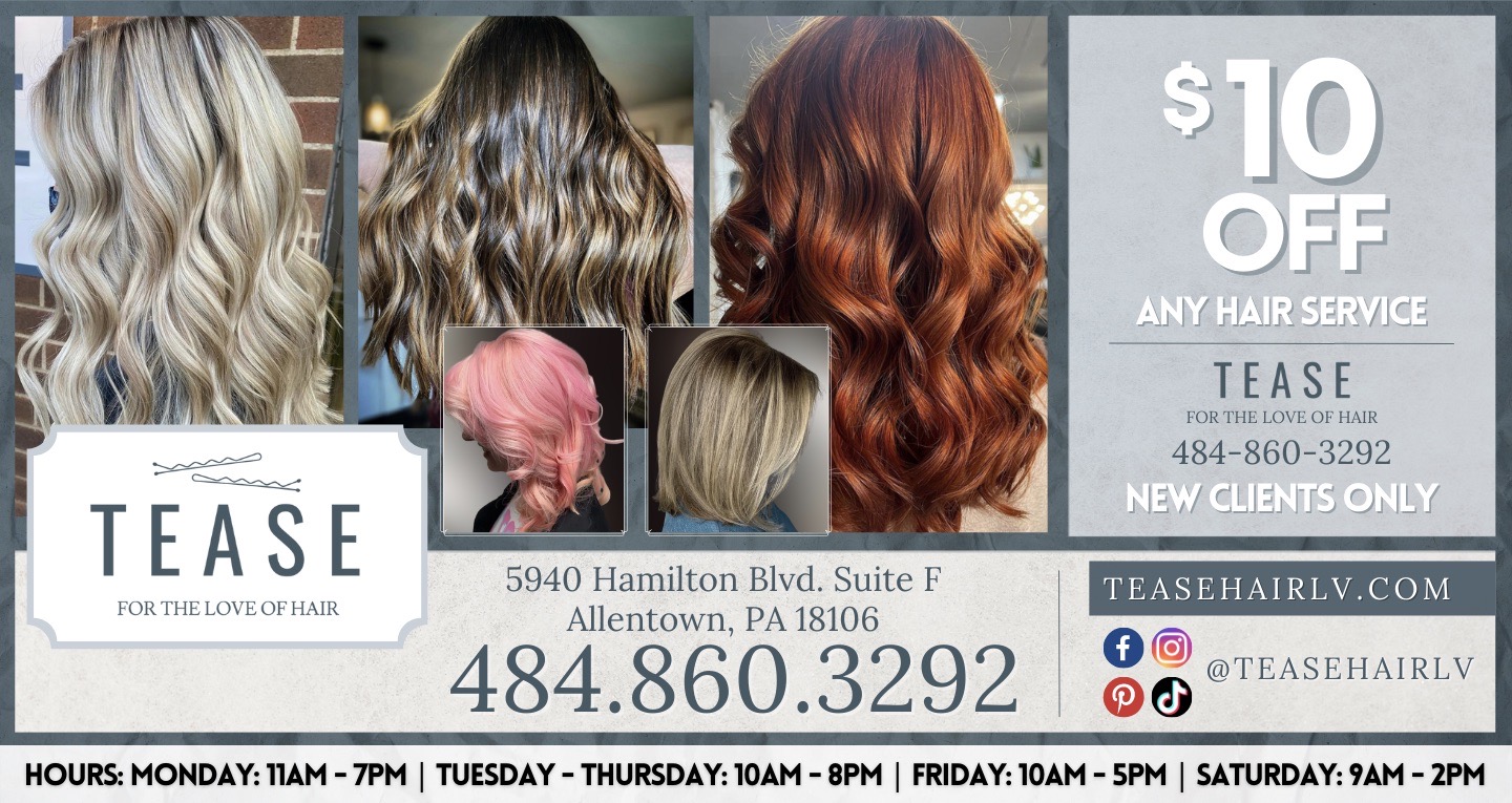 Established in January of 2020, Tease Salon braved the economic hardships and survived the pandemic shutdown, to now: we have flourished, and take every opportunity that walks through our door to give back to the surrounding communities. We pride ourselves in establishing a relaxed environment, where any client/service is accepted and can receive the best possible services. Our staff is always staying educated on the most current trends and techniques throughout the fashion world, creating services tailored to each client’s individual needs.