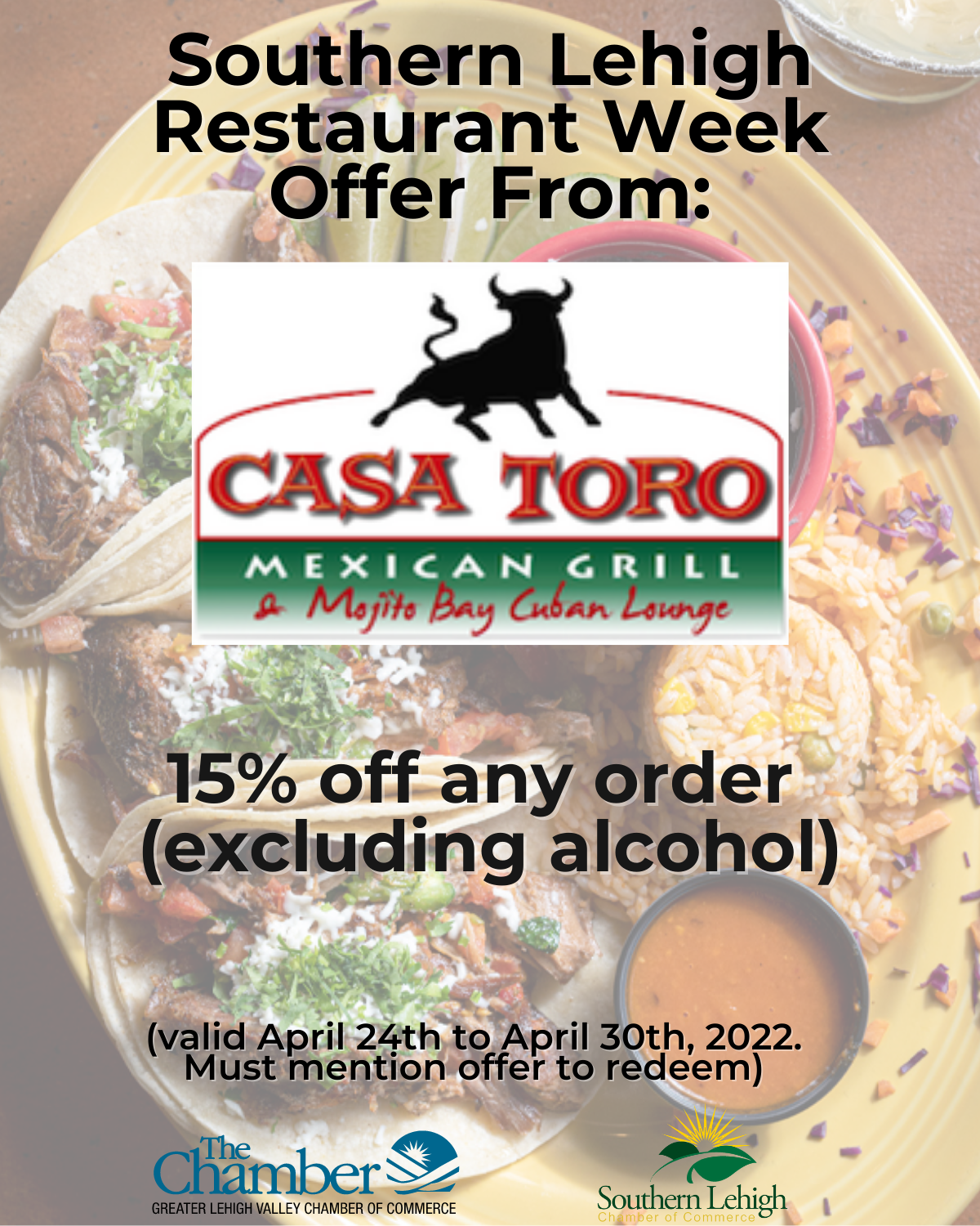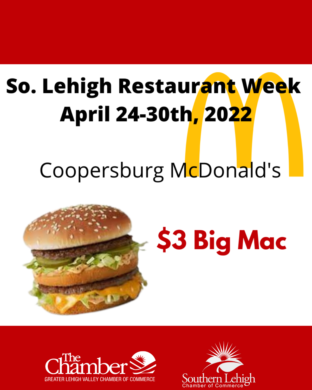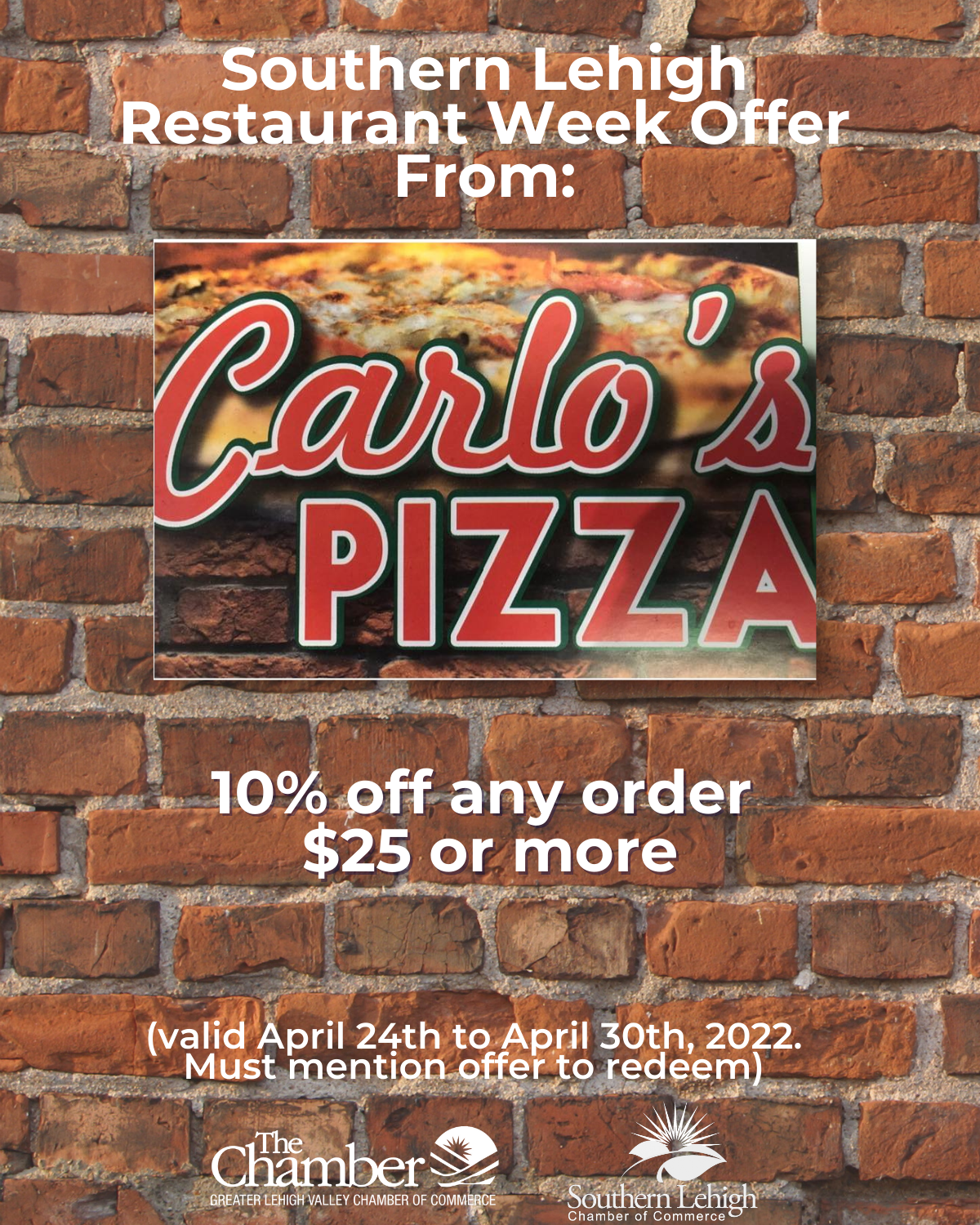 The Southern Lehigh Chamber of Commerce, along with their community sponsors, are excited to present the 2022 Restaurant Week after having to shift gears over the last two years. For the week of Sunday April 24th to Saturday April 30th, 10 local restaurants across Upper Saucon Township and Coopersburg Borough will be offering discounts and specials.