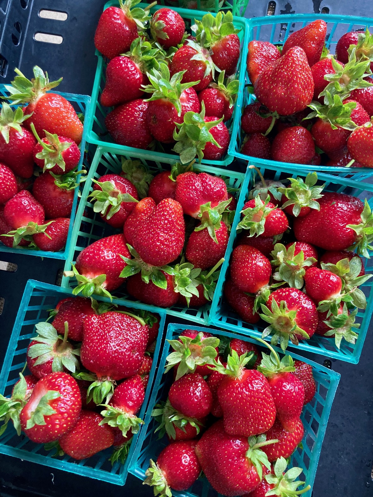 It’s finally starting to look like the season here at Crooked Row. With a colder start to spring and then these wild heat spikes, our fields have been a little cranky, and the plants are about 10 days behind in their growing cycles from where they were this time last year. But they are growing, nonetheless! We just began picking out of our younger strawberry patch (it’s a few pints every day, in a week we’ll have much more), the lettuce we kept under row cover is beautiful, and we are already trellising the tomatoes and cucumbers in our high tunnels! Our summer carrots and beets germinated well. Every season is always shaped a little differently, but we’re all feeling great going into June.