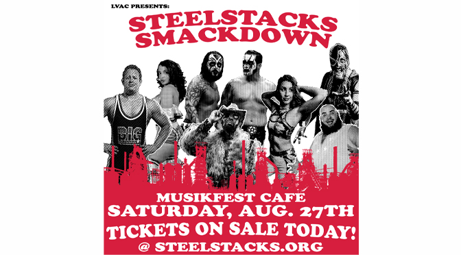 BETHLEHEM, Pa. – ArtsQuest is excited to partner with Lehigh Valley Apparel Creations (LVAC) to present the first-ever SteelStacks Smackdown, a wrestling show like no other. This epic event will be hosted in the Musikfest Café presented by Yuengling on Sat., Aug. 27 at 8 p.m., with a meet and greet starting at 6 p.m. Tickets for ArtsQuest Members are now on sale, while tickets for the general public will go on sale Mon., July 18 at steelstacks.org. For more exclusive ticket access and advance purchase opportunities, become an ArtsQuest Circle donor today.