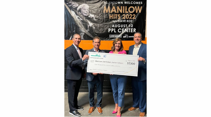 In honor of the Manilow Music Teacher Award, PPL Center and Air Products have teamed up to award a total of $7,500 to three area school districts, making a donation of $2,500 to the Allentown School District, Bethlehem School District, and Easton School District for their Middle School music programs.