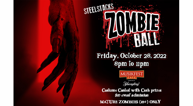 BETHLEHEM, Pa. – Get ready to rise from the grave this Halloween weekend for the fifth annual SteelStacks Zombie Ball in the Musikfest Café presented by Yuengling on Friday, Oct. 28 at 8 p.m.  Be prepared, to be scared! Tickets for this spooktacular event are $10 each and are now on sale at steelstacks.org. For exclusive ticket access and advance purchase opportunities, become an ArtsQuest Circle donor today.