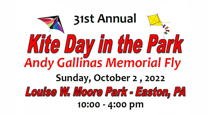 This year’s event will honor Andy Gallinas, who was the founding member of both Lehigh Valley Kite Society and Pocono Kite Symphony. Andy passed away in December 2021.