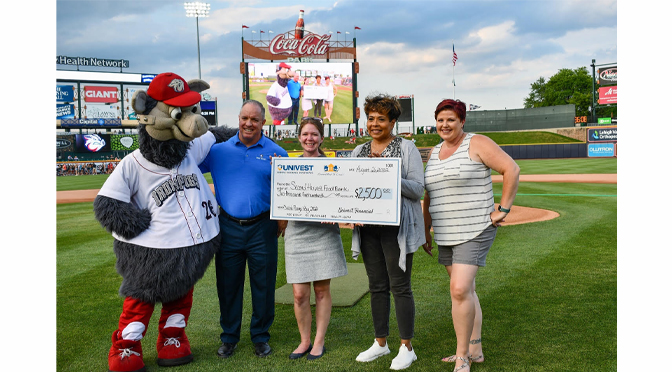 September 12, 2022 – Univest Financial recently presented Second Harvest Food Bank with a check for $2,500 earned through the Lehigh Valley IronPigs “Double Plays Pay” sponsorship. Each time the IronPigs made a double play, Univest provided a $10 donation to Second Harvest. Second Harvest has served as a program of the Community Action Committee of the Lehigh Valley since 1982. The organization’s mission is to obtain food and distribute it to people in need through area nonprofits, and to provide resources for education and advocacy to end hunger.