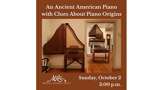 This free talk on October 2, 2022 will reveal the mysteries about a special instrument in the collection of the Moravian Historical Society. Believed to be the earliest piano made in America, audiences will be able to hear a reproduction of the instrument played during the event.