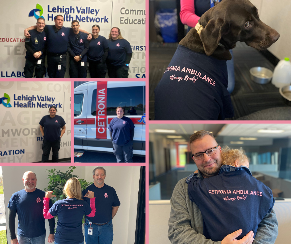 Allentown, Pa., November 2, 2022 – Cetronia Ambulance Corps and its associates were delighted to raise funds to go toward breast cancer awareness this past October. Paramedic Chris Sholley came to Cetronia’s leadership team with an idea to sell t-shirts to the associates with profits being given to Lehigh Valley Health Network’s John and Dorothy Morgan Cancer Center.