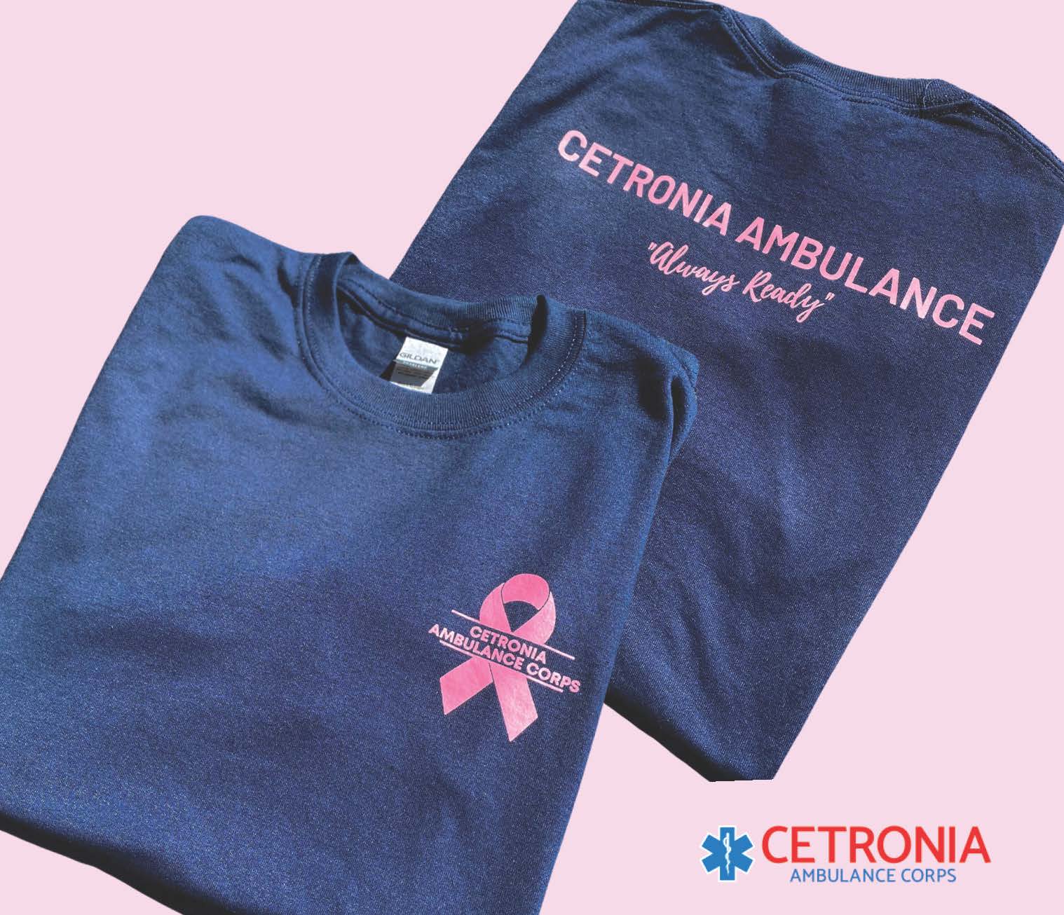 The t-shirts adorned the iconic pink ribbon on the front with Cetronia Ambulance Corps entwined horizontally, and Cetronia’s name and slogan on the back. The associates that purchased a t-shirt were able to wear them every Friday during the month of October to raise awareness for breast cancer.