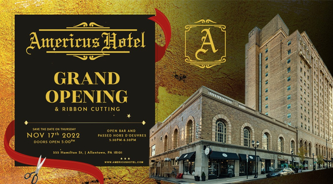 Where: Historic Americus Hotel, 555 Hamilton St Allentown PA 18101