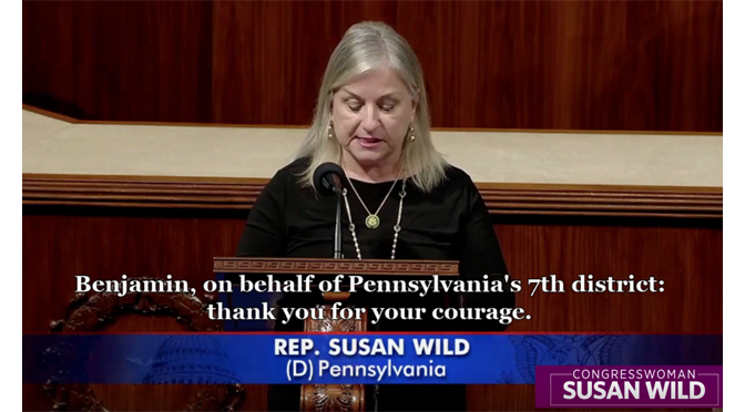 Representative Susan Wild took to the House floor to honor Benjamin Steidinger of Germansville, Pennsylvania. Nearly one year ago, Benjamin Steidinger put his life at risk to rescue two women, a baby, and a dog from a burning building in Heidelberg Township.