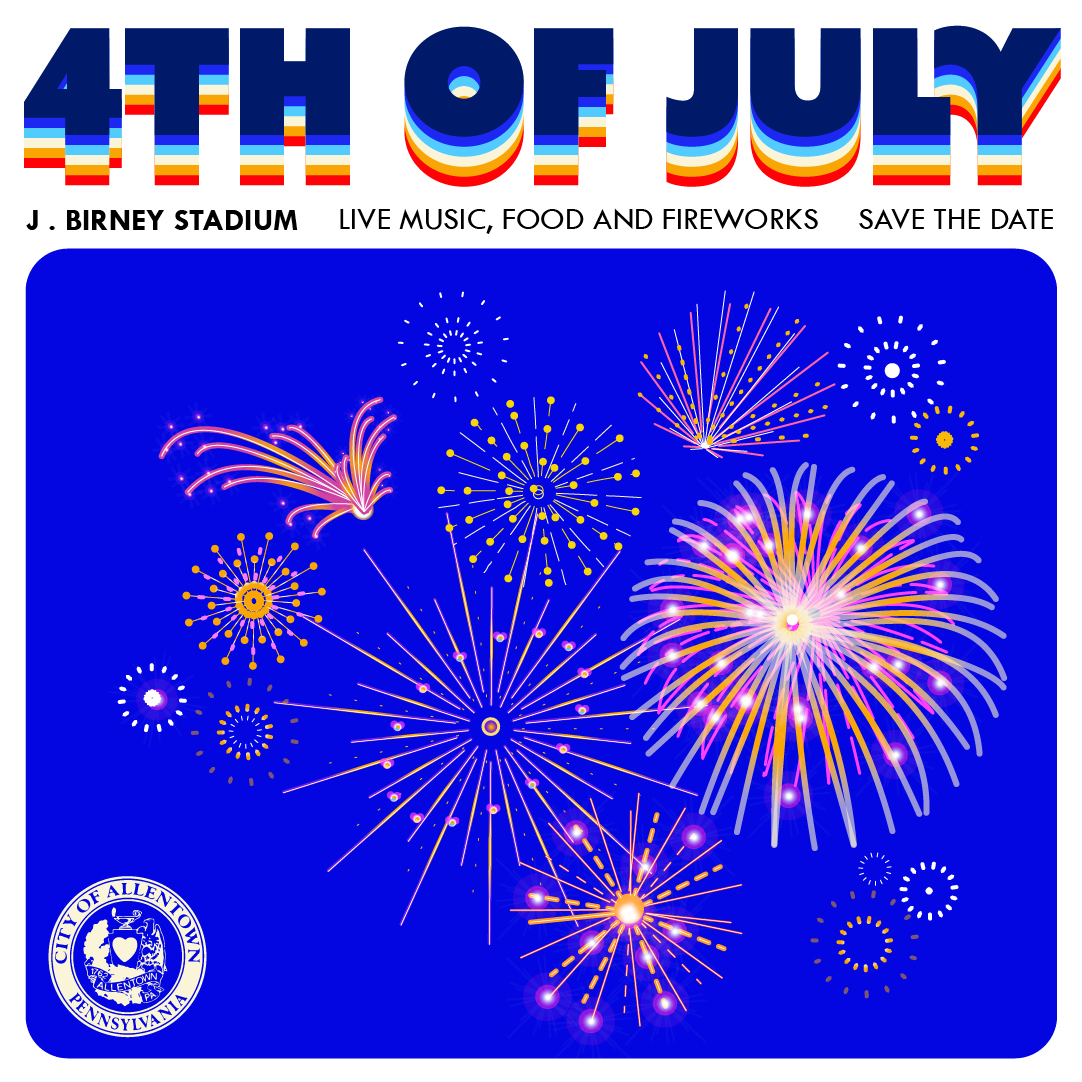The Fourth of July is a federal holiday commemorating the declaration of independence in the United States. The City’s festivities will include live performances and fireworks at the stadium. Vendors and games will be located at the entrance to the stadium on Linden Street. Active-duty military and veterans will be honored during the event. More information can be found at www.allentownpa.gov/fireworks.
