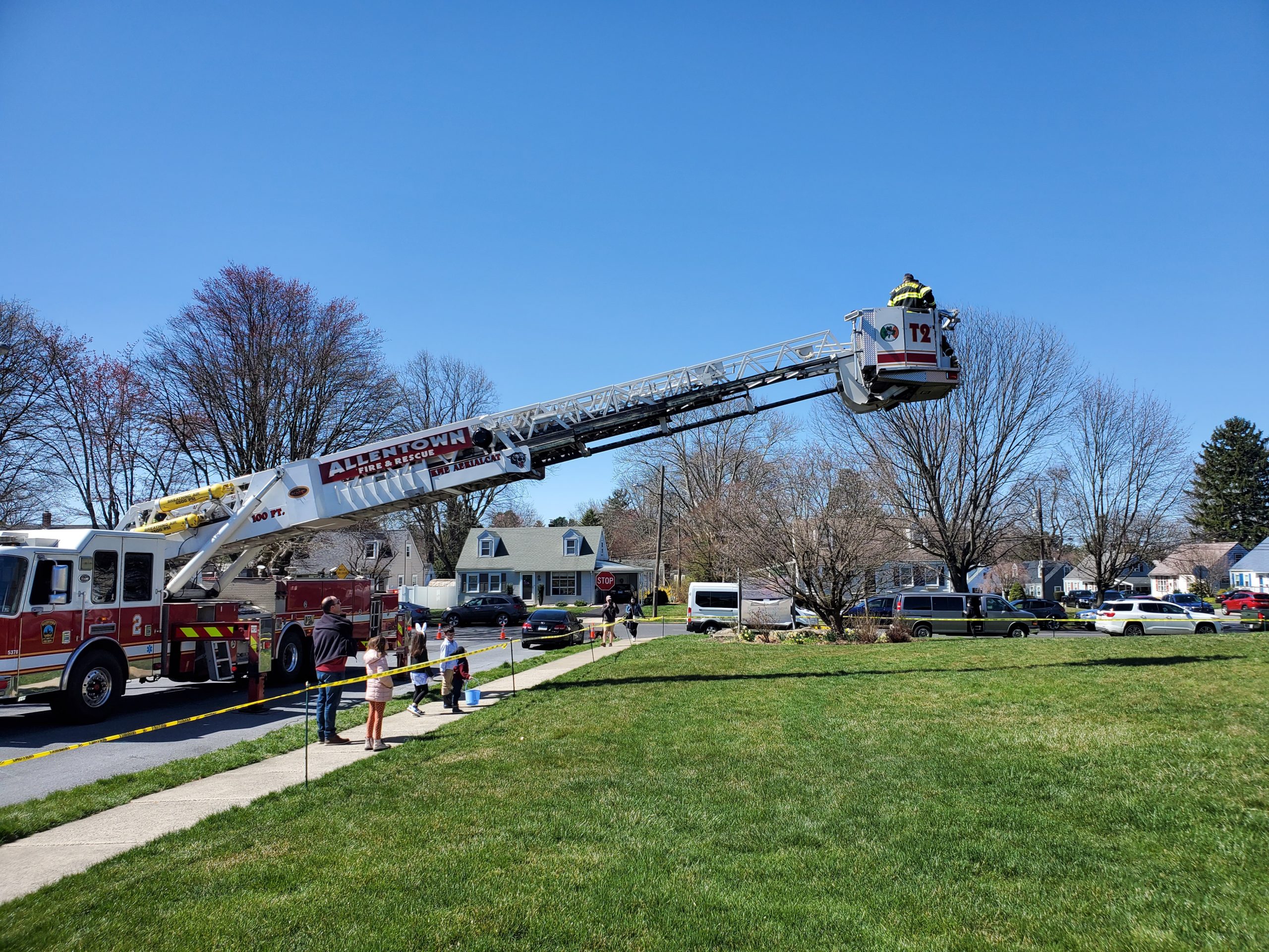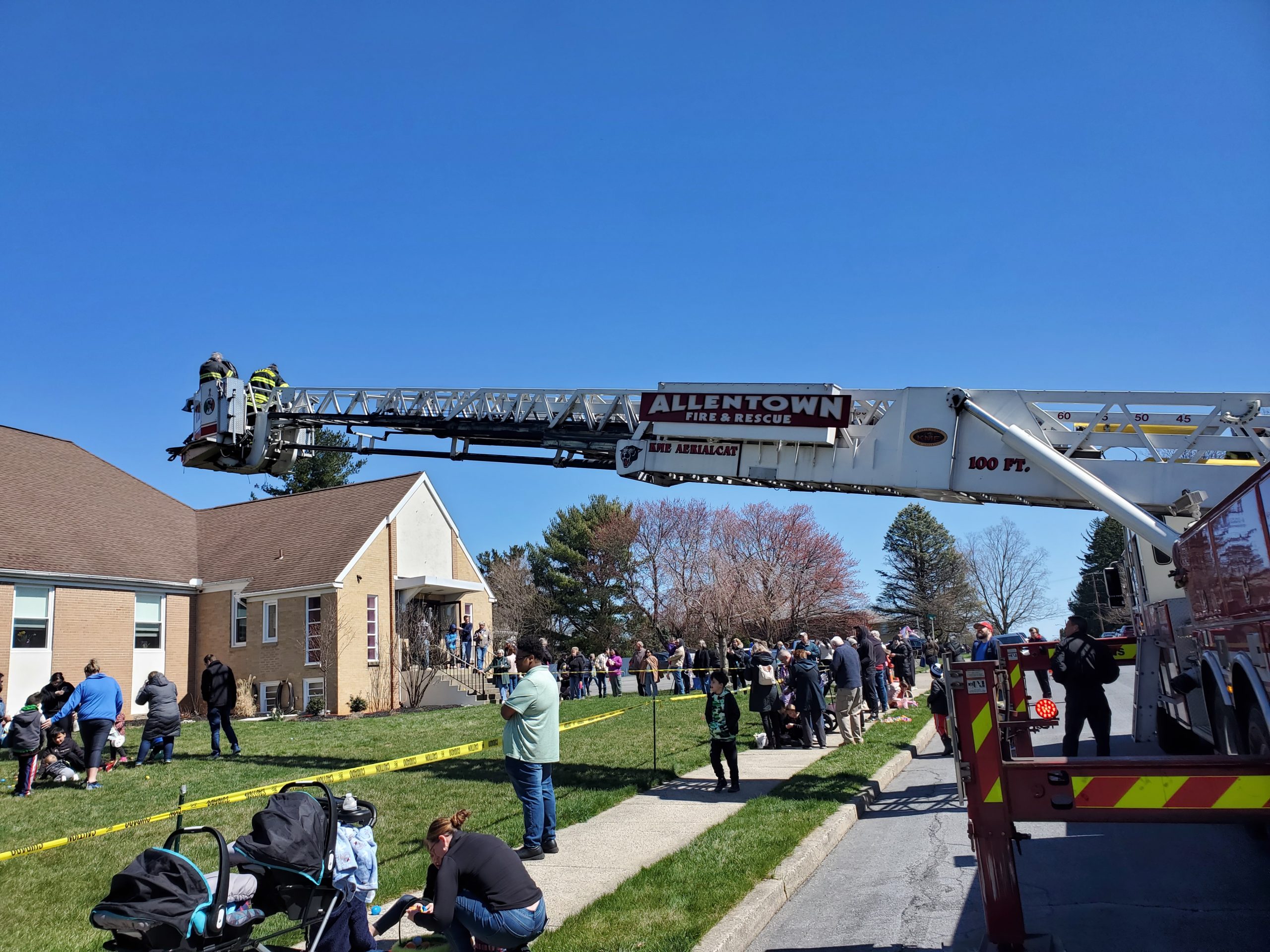 Allentown Fire Dept. had a one of there trucks on site to drop eggs to kids and give tours of the inside workings as well prior to the drop.
