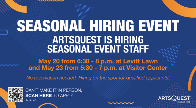 Bethlehem, PA, May 16, 2023 – ArtsQuest is excited to announce that we are currently hiring Event Staff for our spring and summer season and will host two job fair events: