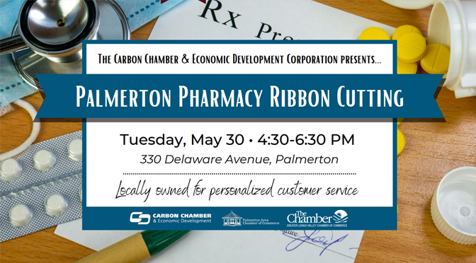 Palmerton, Pa – The Carbon Chamber and Economic Development Corp. is excited to invite the community to the ribbon cutting of the newly opened Palmerton Pharmacy on Tuesday, May 30, from 4:30 – 6:30 p.m., at the 330 Delaware Avenue location.