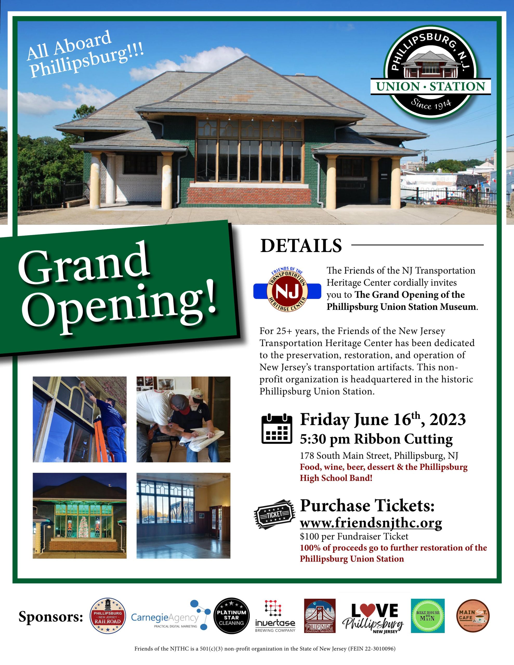 - Grand Opening of Historic Train Station Museum: 5:30-7:30 PM FUNDRAISER 178 South Main Street Phillipsburg, NJ