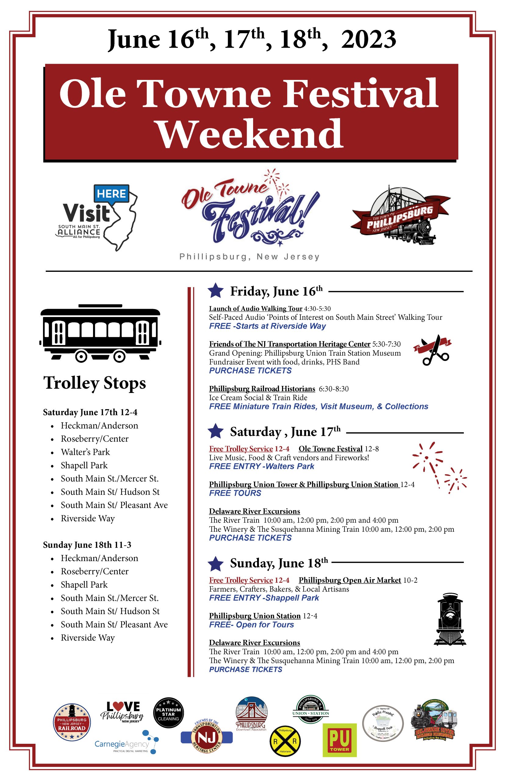 - Phillipsburg Union Station Tours: 12-4 PM FREE ADMISSION 178 South Main Street, Phillipsburg, NJ