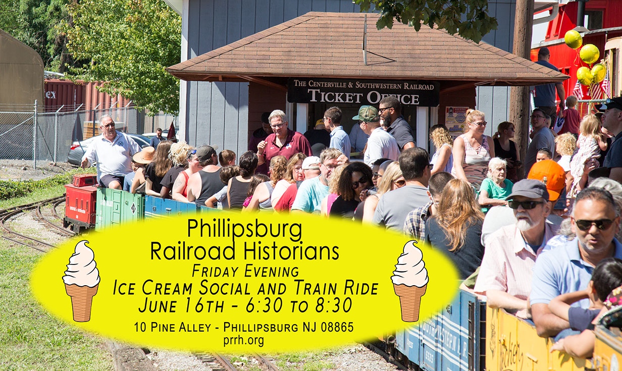 - Ice Cream Social Train Ride: 6:30-8:30 PM FREE 10 Pine Alley Phillipsburg, NJ