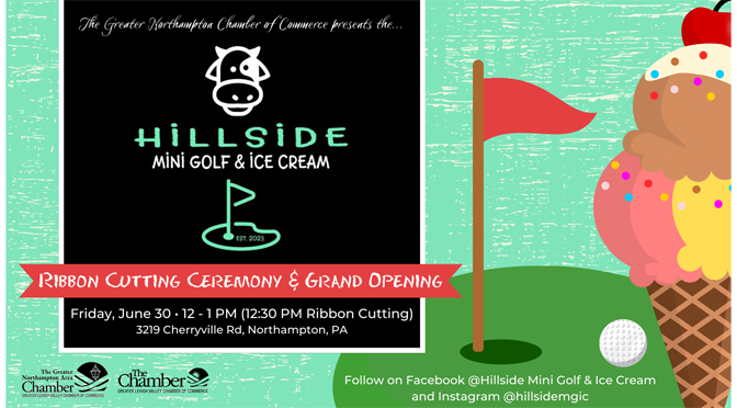 The Greater Northampton Area Chamber of Commerce, a proud partner of the Greater Lehigh Valley Chamber of Commerce, is excited to offer a hand at Hillside Mini Golf & Ice Cream’s Grand Opening with an official ribbon cutting ceremony. The Chamber is always excited to celebrate a new business and Hillside is no exception. This Northampton business is built on love and family fun. Hillside’s mission is to provide families with a beautiful modern facility in which to make memories and spend good times.