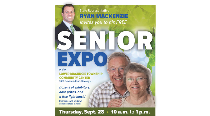 MACUNGIE – Rep. Ryan Mackenzie (R-Lehigh) is inviting area senior citizens and their caregivers to his annual Senior Expo on Thursday, Sept. 28. The free event, which is co-sponsored by St. Luke’s University Health Network, will be held from 10 a.m. to 1 p.m. at the Lower Macungie Township Community Center, 3450 Brookside Road in Macungie.